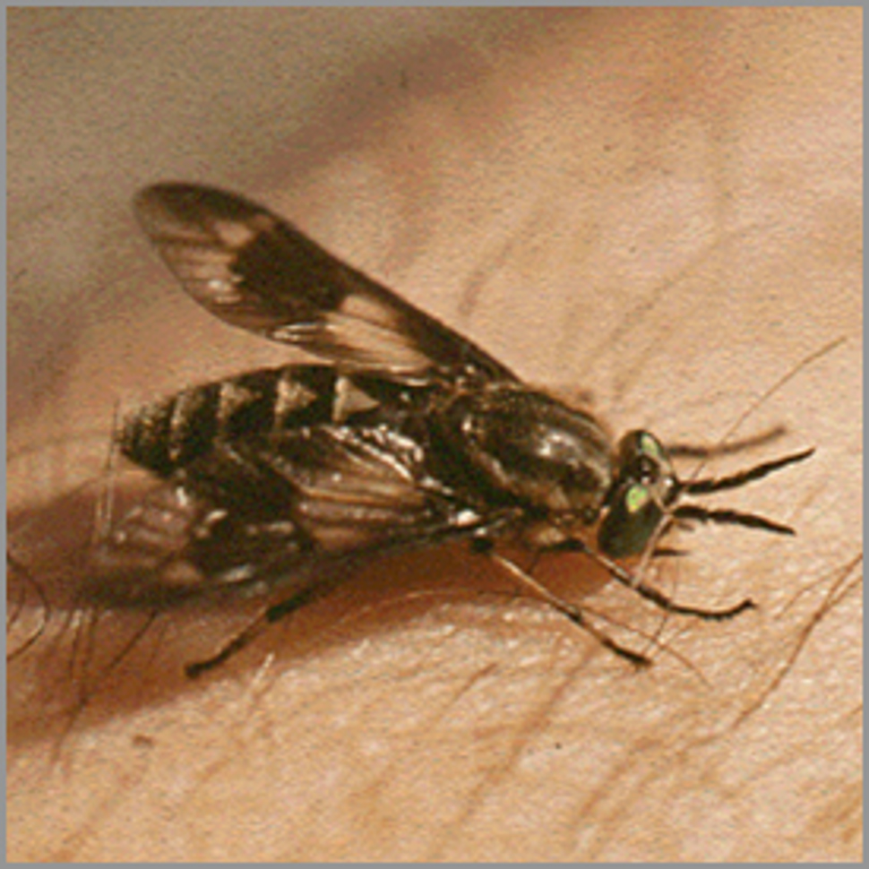 - Slekten Chrysops (blindinger) karakteriseres ved middels store fluer med skinnende gull- eller grønnfargede mønster i øynene. Kroppen har lyse og svarte tegninger mens vingene har brede og mørke tverrbånd (se figur).