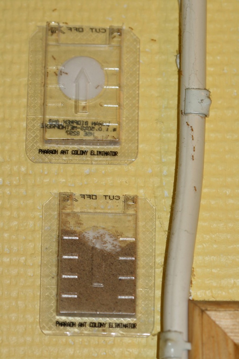 Den forgiftede åten sjekkes hyppig ettersom nye stier kan dukke opp, og det kan gå tomt for åte om maurene er mange. Målet er å holde på lenge nok til å få åte fordelt til alle individene i bygningen. Etter at selve bekjempelsen er over, bør stedet overvåkes for å stadfeste om mauren er bekjempet.