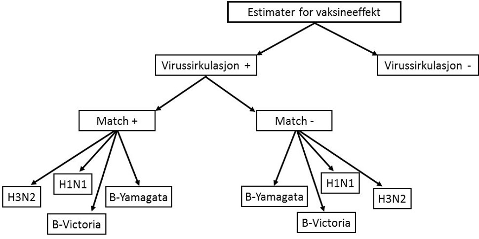 En viktig forutsetning for effektstudier er at det sirkulerer virus i studieperioden. Darvishian et al. (2014) viste på bakgrunn av effektestimater fra TND-studier (jfr tabell 2) at vaksinen gir beskyttelse ved både match og mismatch i sesonger med sirkulerende virus, men at det ikke er mulig å påvise en beskyttende effekt på befolkningsnivå i sesonger med kun lokal, sporadisk eller ingen influensasirkulasjon (35). Selv om vaksinen kan beskytte enkeltindividet i perioder med lite virussirkulasjon, vil effekten ikke være målbar på befolkningsnivå på grunn av få sykdomstilfeller. Når data skal sammenstilles er det derfor viktig at studiesesonger uten tilstrekkelig virussirkulasjon analyseres for seg.